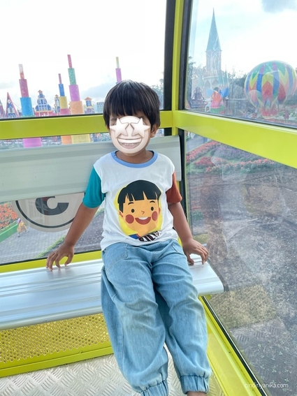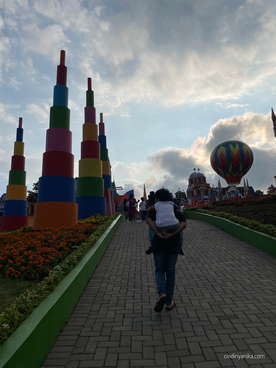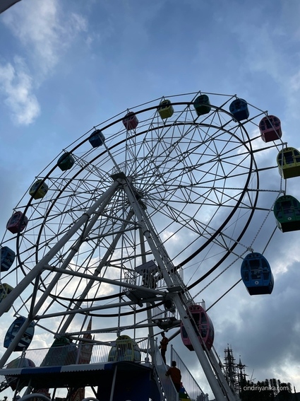 Setelah ‘senam jantung’ di wahana rainbow slide, saya dan Bilgi lanjut naik bianglala yang besar. Kami menikmati Taman Bunga Celosia bahkan Bandungan dari ketinggian. Kita naik bianglala ini sebanyak dua putaran. Saya lupa berapa harga tiketnya, kayaknya antara Rp 15.000/orang sampai Rp 20.000/orang. Tiket dewasa dan anak-anak juga berbeda.
