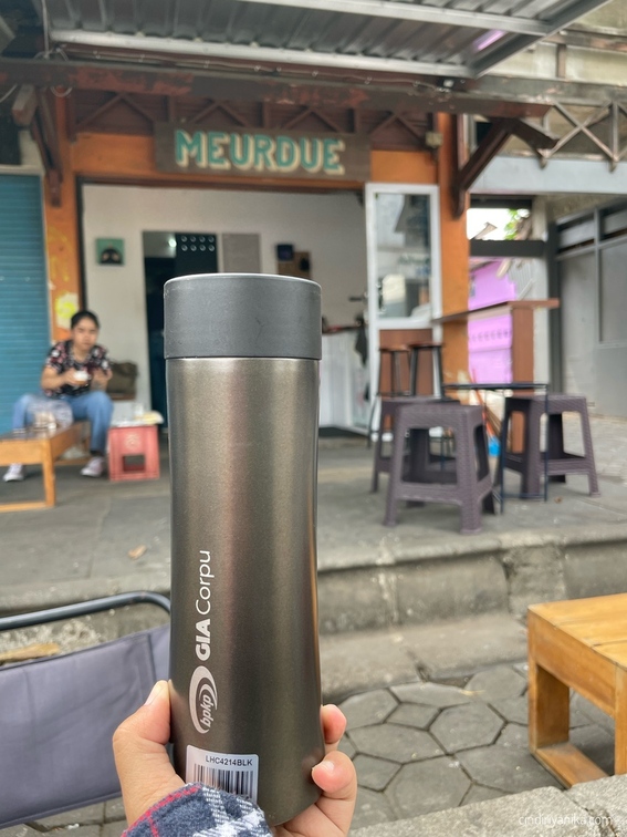 Bagi saya, ngopi di Meurdeu Sriwedari ini memang unik. Simpel tapi nggak mengurangi kenikmatan. Menikmati tegukan demi tegukan sambil menikmati suasana sekitar Sriwedari dan bila beruntung bisa sambil menikmati Kereta Batara Khrisna lewat di Jalan Slamet Riyadi. Saat saya ke Meurdeu Sriwedari ini hari masih siang, kayaknya perlu nyoba ke sini lagi saat sore atau malam, bisa lebih syahdu ngopinya 😀